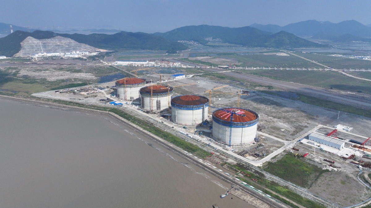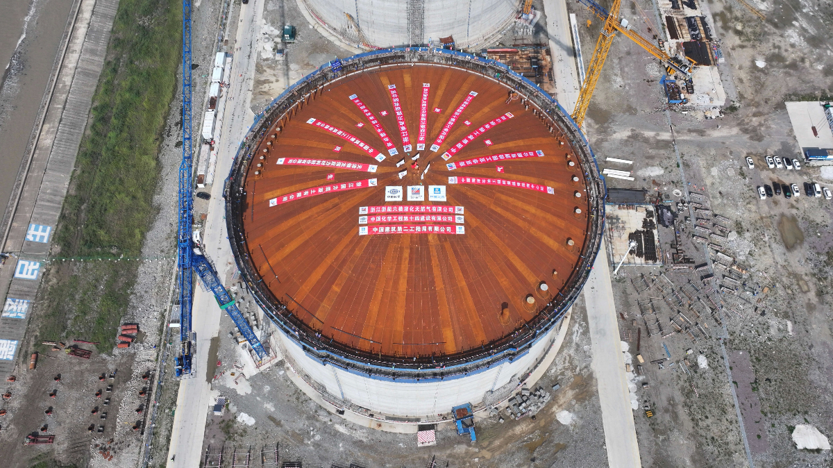 浙能六橫LNG接收站項(xiàng)目1號(hào)儲(chǔ)罐正在氣頂升。 劉莎 提供