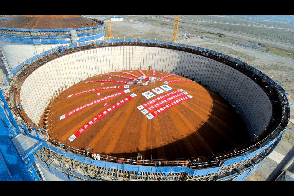 10月10日,浙能六橫LNG接收站項(xiàng)目1號(hào)儲(chǔ)罐氣頂升順利完成。 周志南 攝