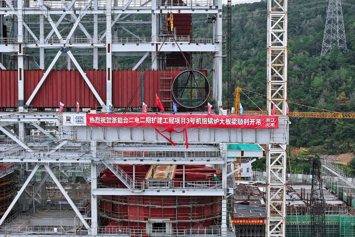 奮戰金秋,重大能源項目建設迎來新“豐收”。10月25日,浙能臺二電二期擴建工程3號機組鍋爐首根大板梁順利吊裝就位,標志著該機組鍋爐鋼結構主體框架趨于完工,將進入鍋爐受熱面設備安裝施工階段。