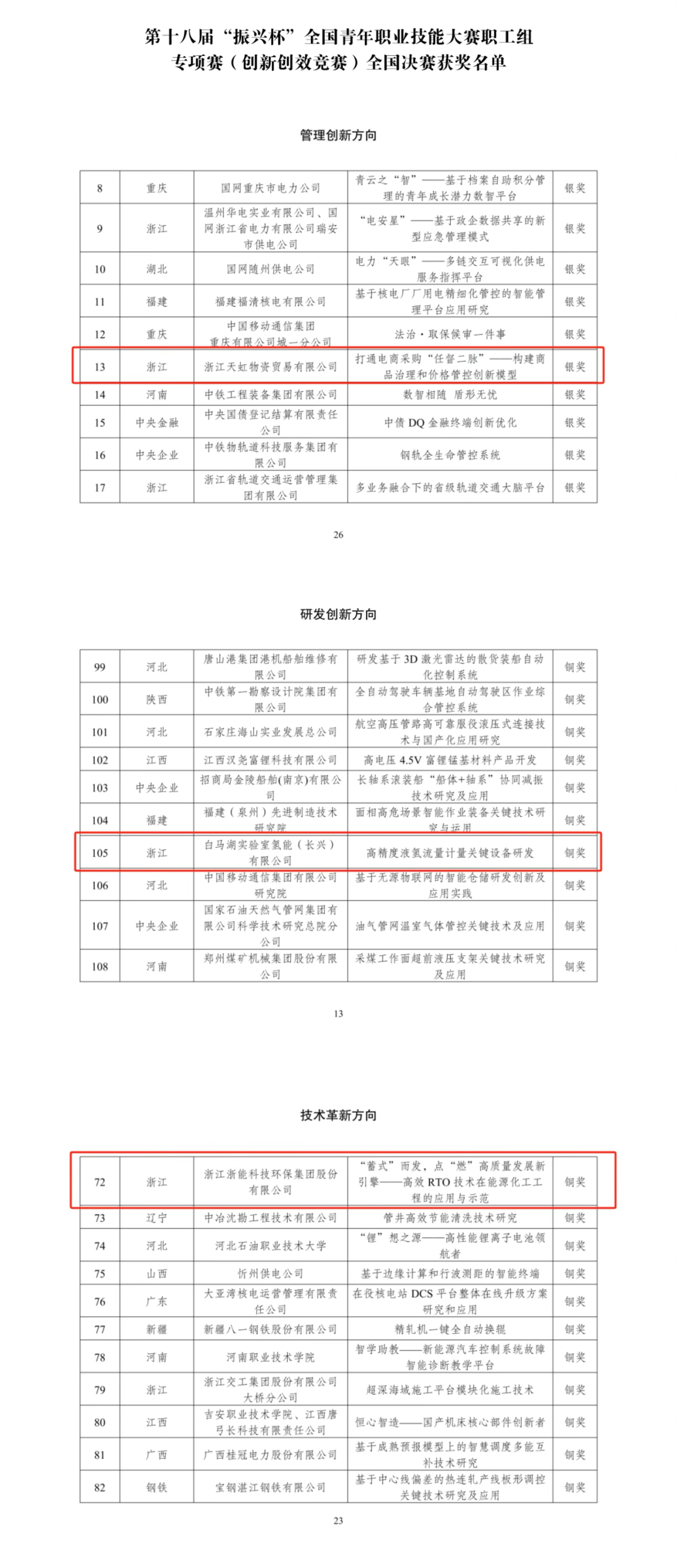 本網(wǎng)訊 近日,第十八屆“振興杯”全國青年職業(yè)技能大賽職工組創(chuàng)新創(chuàng)效競賽決賽在重慶舉行,來自浙能集團(tuán)的三支青年團(tuán)隊(duì)在比賽中奮勇拼搏、展現(xiàn)活力,最終斬獲1項(xiàng)銀獎(jiǎng)、2項(xiàng)銅獎(jiǎng)的佳績。