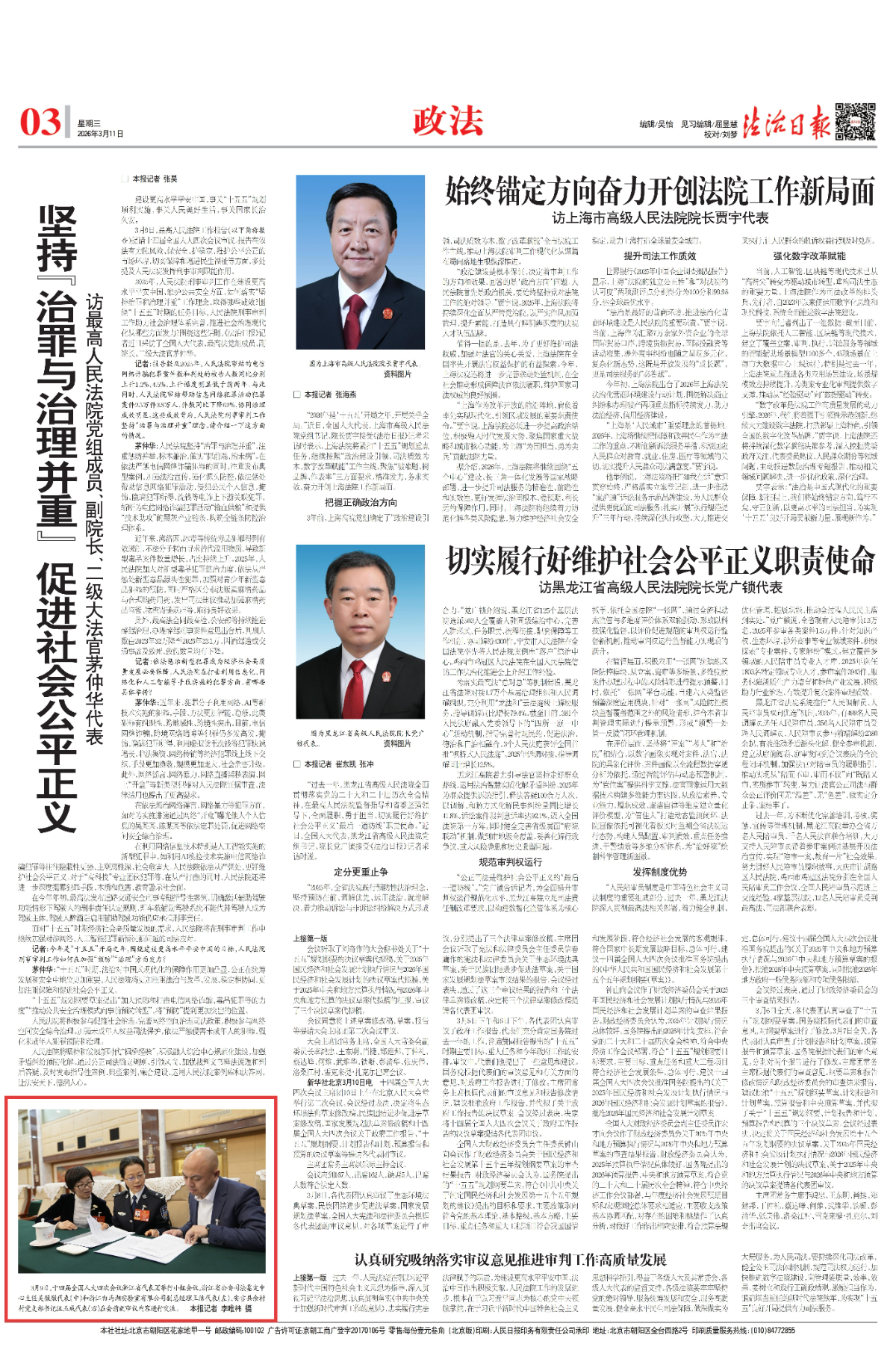 3月11日,《法治日報》刊發圖片新聞。 《法治日報》 圖