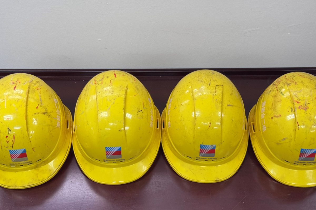 浙能臺二電維護(hù)職工頭盔上的劃痕。 李澤 攝