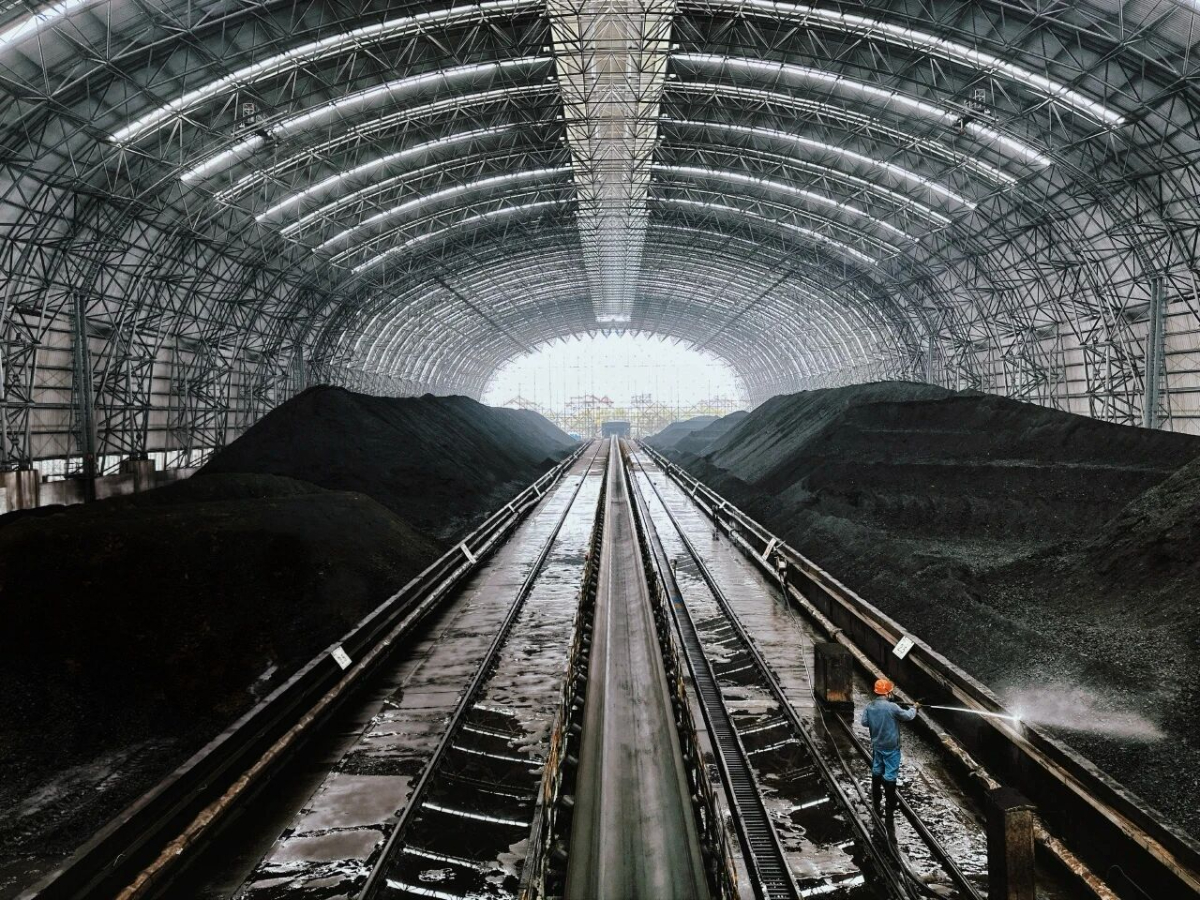 浙能長電高高堆起的煤山連綿起伏。 鄭慧瑗 攝