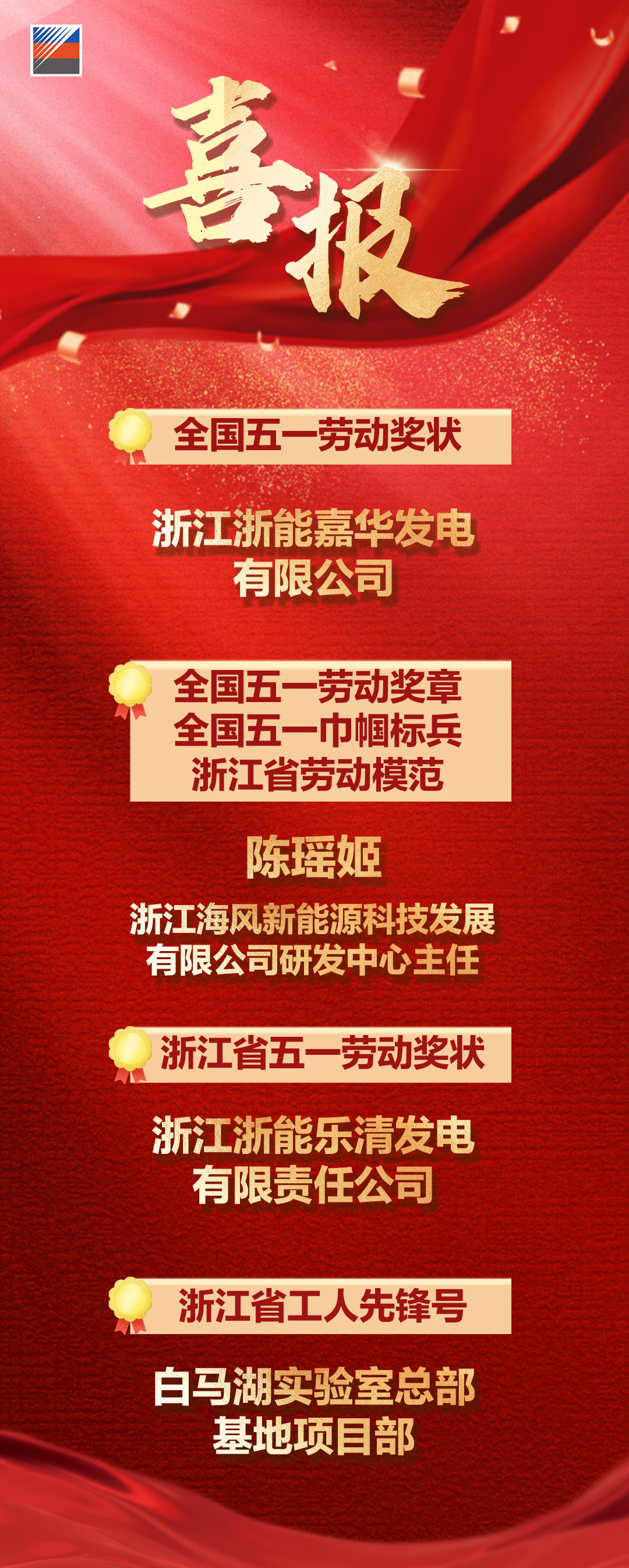 全國五一勞動獎等榮譽公布!浙能這些集體和個人獲表彰